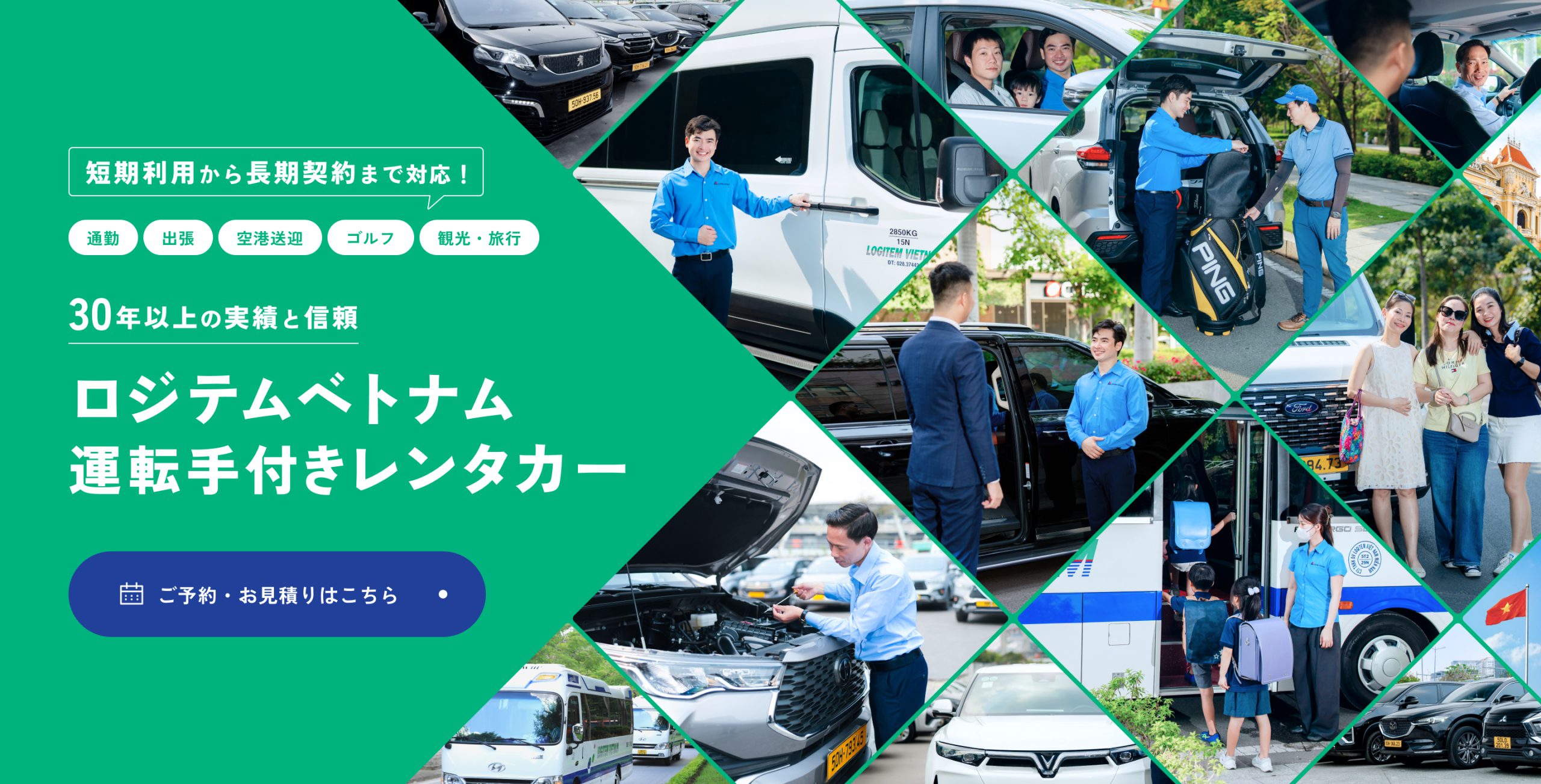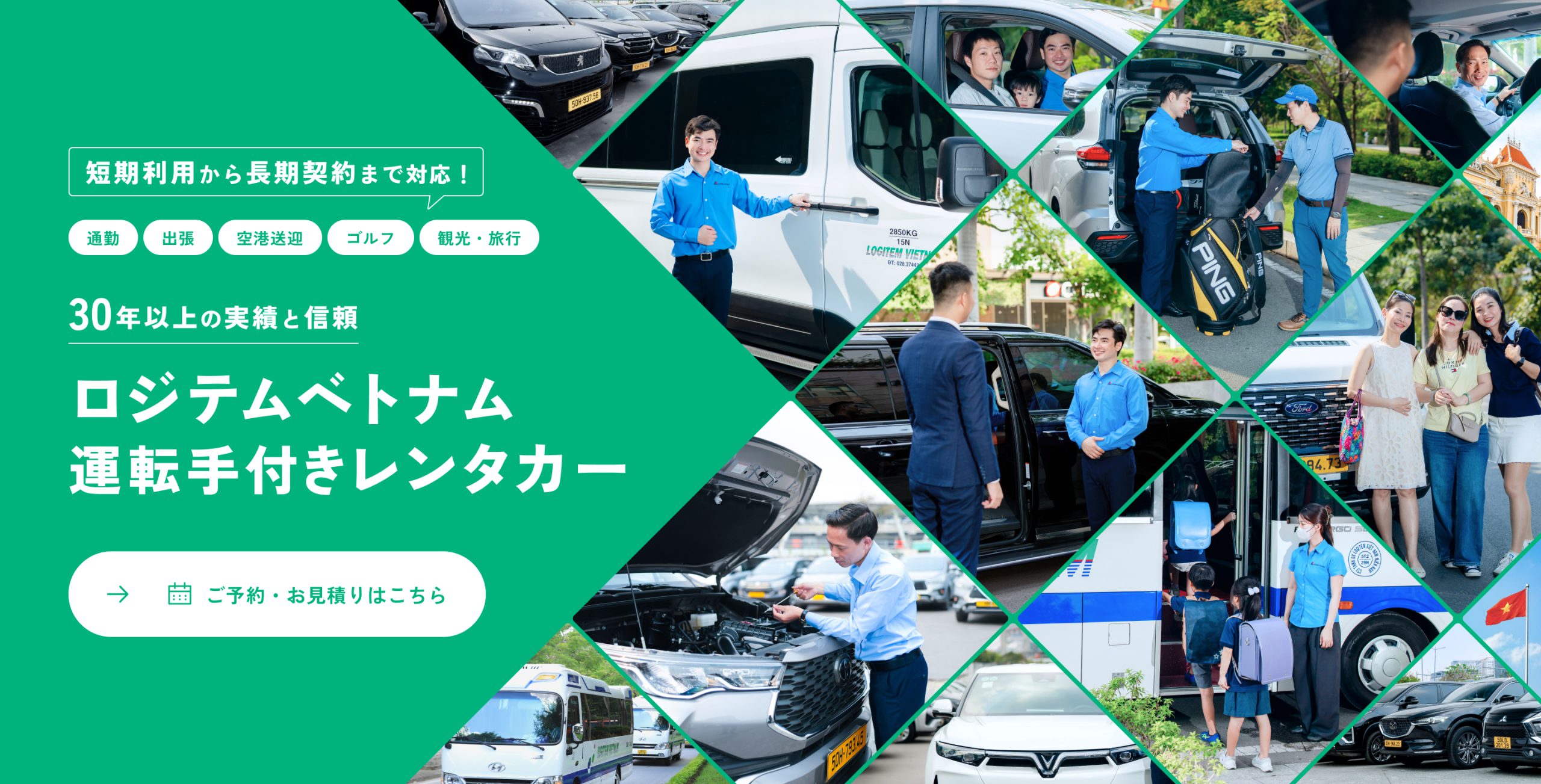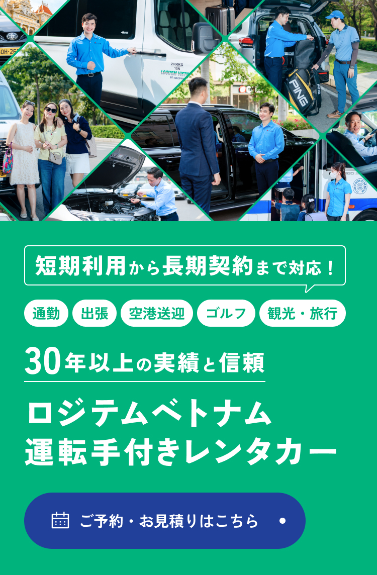必要な時に、必要な分だけ。半日~1日単位で、出張や取引先訪問などのビジネス利用から、空港送迎、ゴルフ送迎、ベトナム観光などのあらゆるシーンでご利用いただけます。